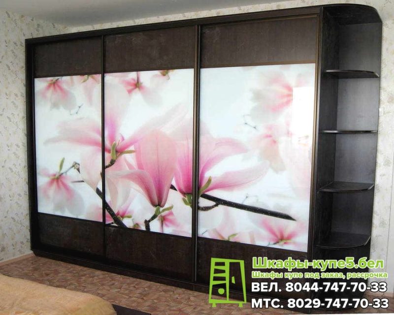 Угловой шкаф-купе с фотопечатью и лакобелем