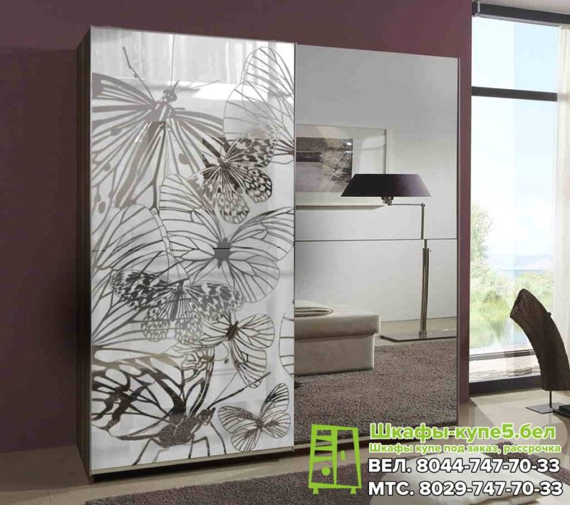 Угловой шкаф-купе с фотопечатью и лакобелем