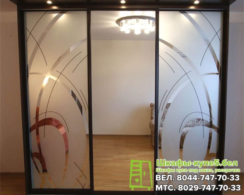Корпусный шкаф-купе с пескоструем и зеркалом
