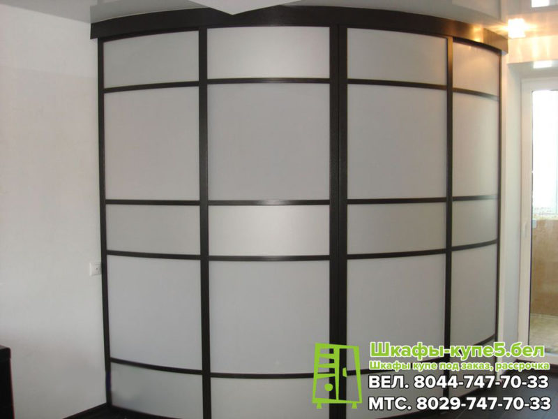 Матовый радиусный шкаф-купе с темным профилем