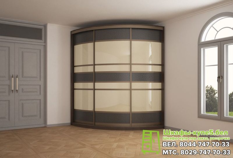 Угловой радиусный шкаф-купе с огстеклом