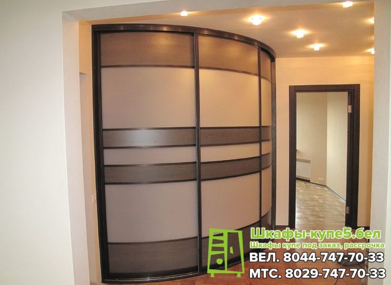 Радиусный шкаф-купе с оргстеклом на 3 двери