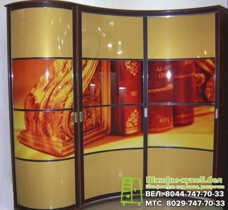 Радиусный шкаф-купе с фотопечатью и глянцевым пластиком