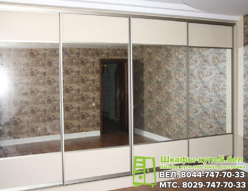 Шкаф-купе на всю стену с зеркалом и ЛДСП